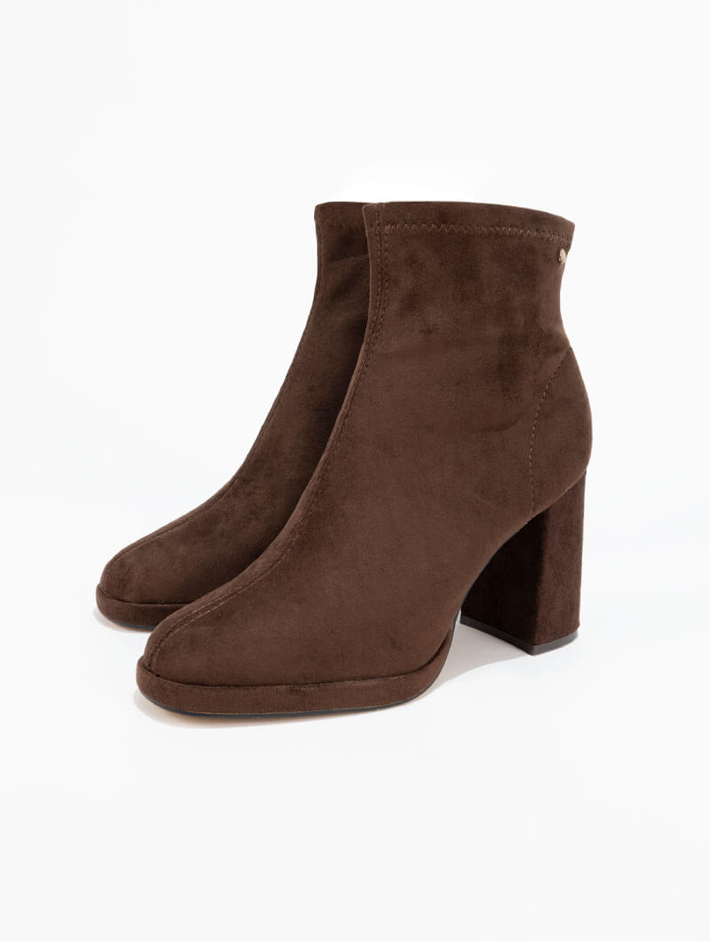 Bottines à talon qui apportent une allure chic et moderne. Leur coupe montante structure la silhouette, tandis que le talon met subtilement en valeur chaque pas.