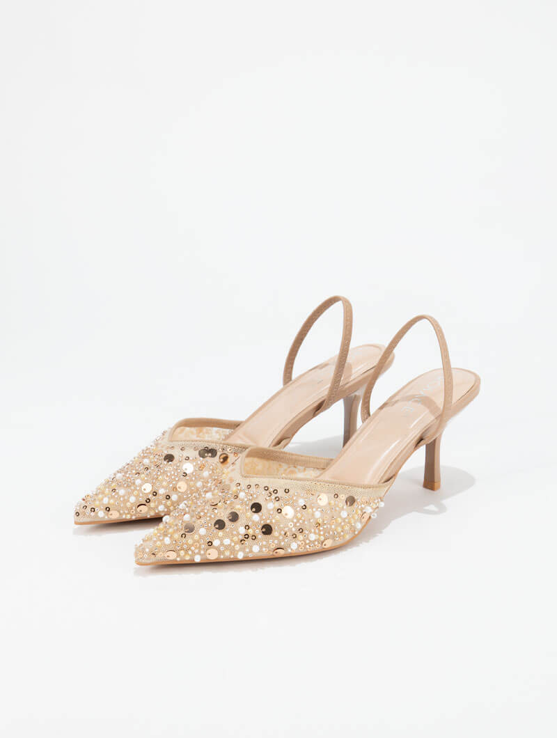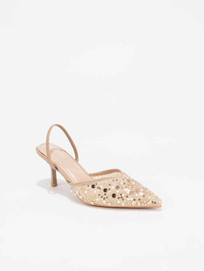 Faites scintiller vos tenues avec ces escarpins raffinés, délicatement ornés de sequins et strass. Alliant glamour et sophistication, ils ajoutent une touche lumineuse à vos soirées et événements spéciaux, tout en offrant confort et style à chaque pas. Hauteur de la semelle: 7.5 CM