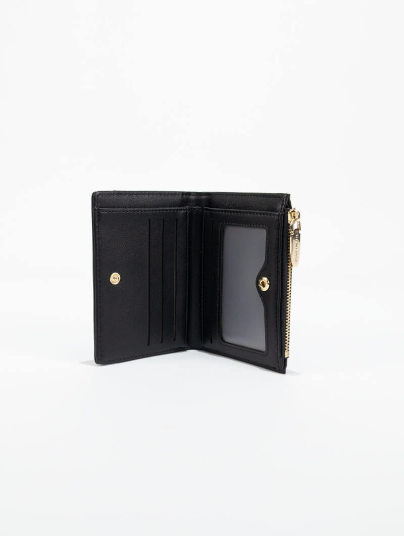 Grâce à son format compact, ce portefeuille se glisse facilement dans un sac. Parfait pour transporter cartes, billets et monnaie sans encombre.