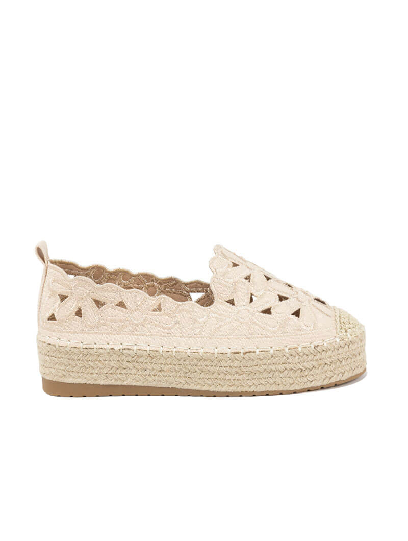 Mocassins compensés avec détail doré et semelle plateforme en corde tressée. Un modèle idéal pour un style estival, tendance et facile à porter.