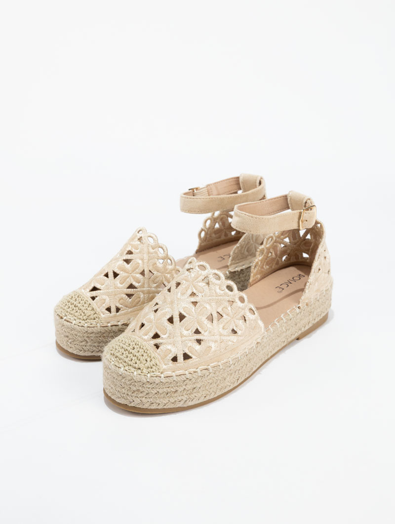 Adoptez l’élégance au quotidien avec ces mocassins compensés à semelle plateforme en corde tressée. Le choix parfait pour un style moderne et estival.