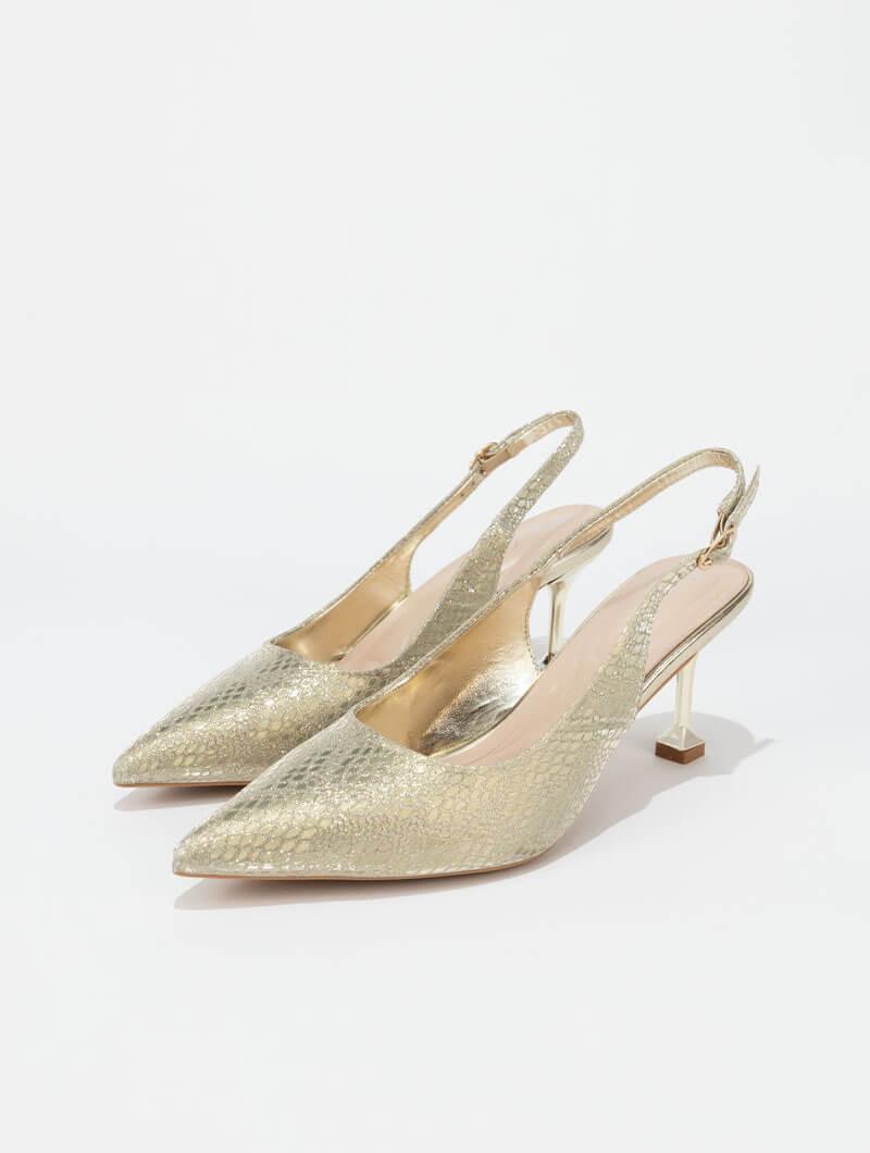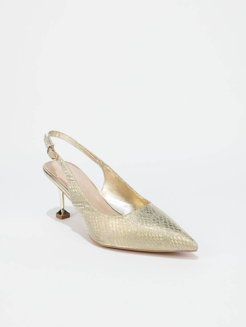 Adoptez un style chic et intemporel avec ces escarpins slingback au design élégant. Leur bout pointu sublime la silhouette, tandis que la bride arrière garantit un maintien optimal et un confort au quotidien.