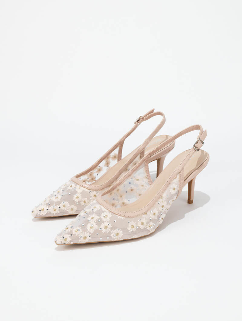 Apportez une touche d’élégance à vos tenues avec ces escarpins raffinés, sublimés par de délicates broderies. Leurs motifs subtils rehaussent votre style avec finesse, tandis que le talon fin et le bout pointu dessinent une allure chic et résolument féminine.