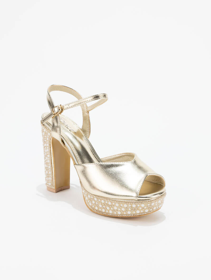Modèle habillé à talons hauts, sublimé par des perles élégantes qui ajoutent une touche de brillance. Parfait pour illuminer vos soirées et compléter vos looks de fête avec style.