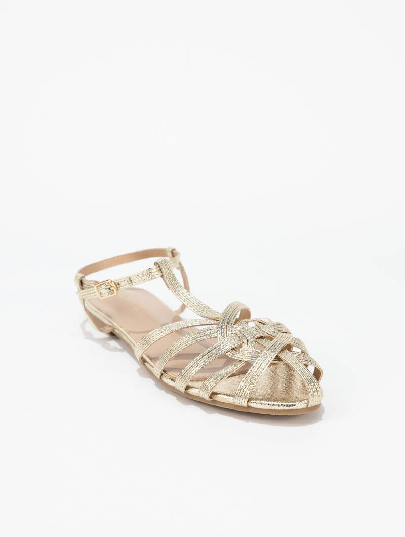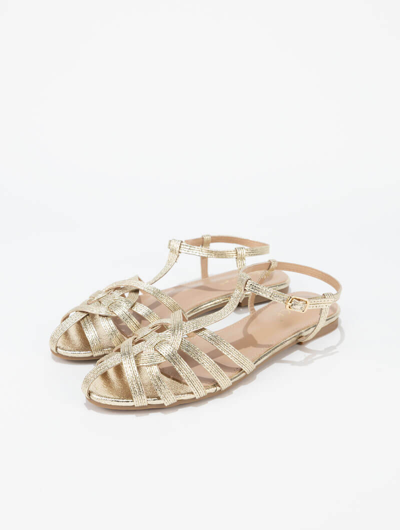 Ces sandales plates métalliques séduisent par leurs détails délicats et leur allure élégante. Confortables et faciles à porter, elles complètent parfaitement vos tenues pour un look chic au quotidien comme en sortie.